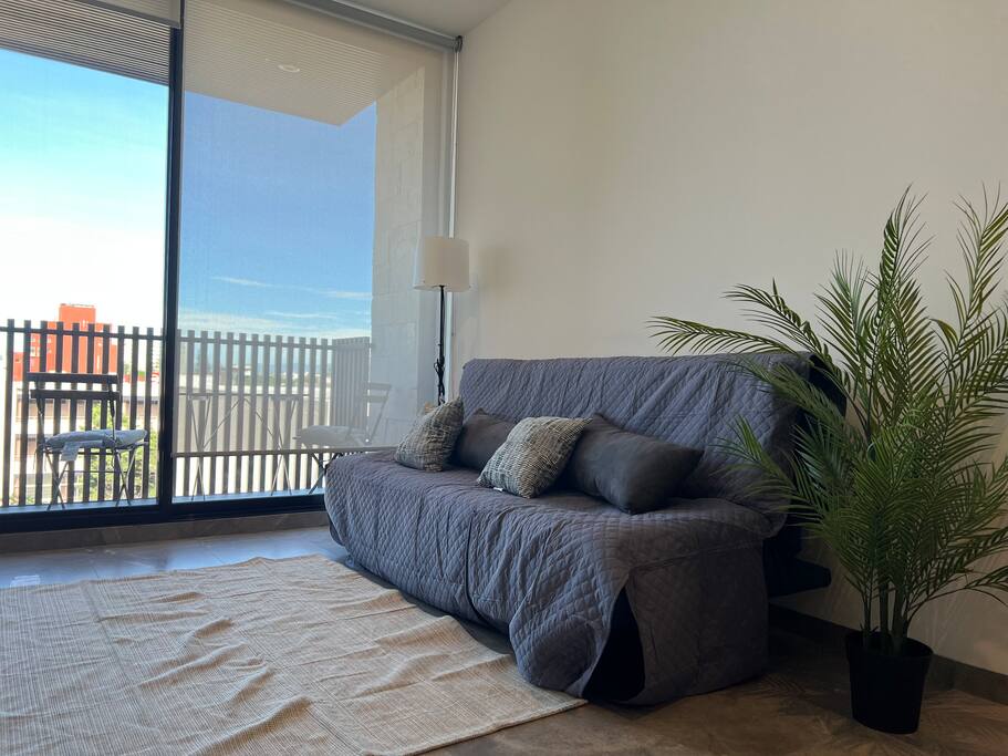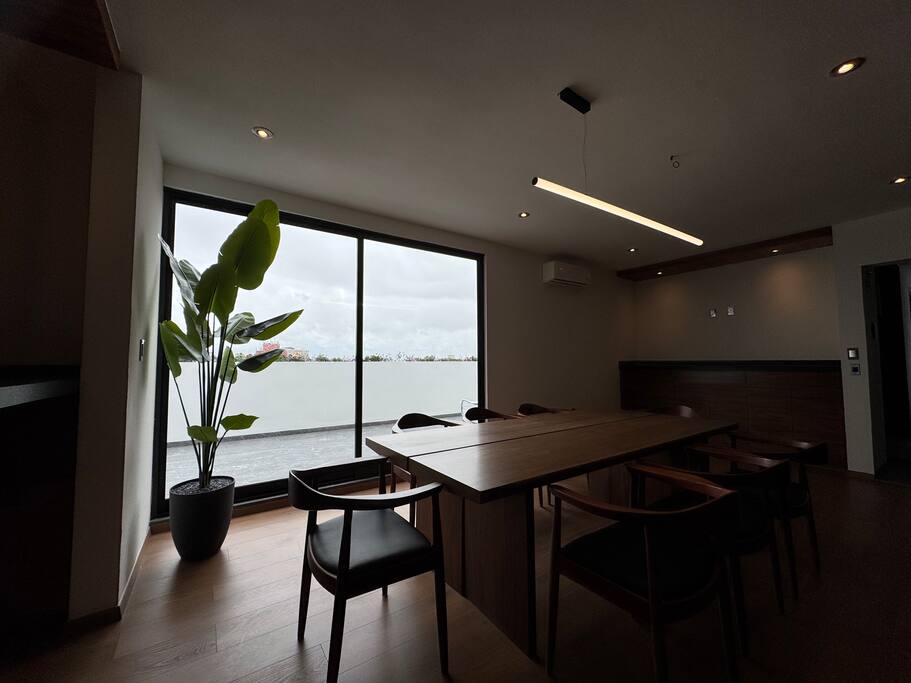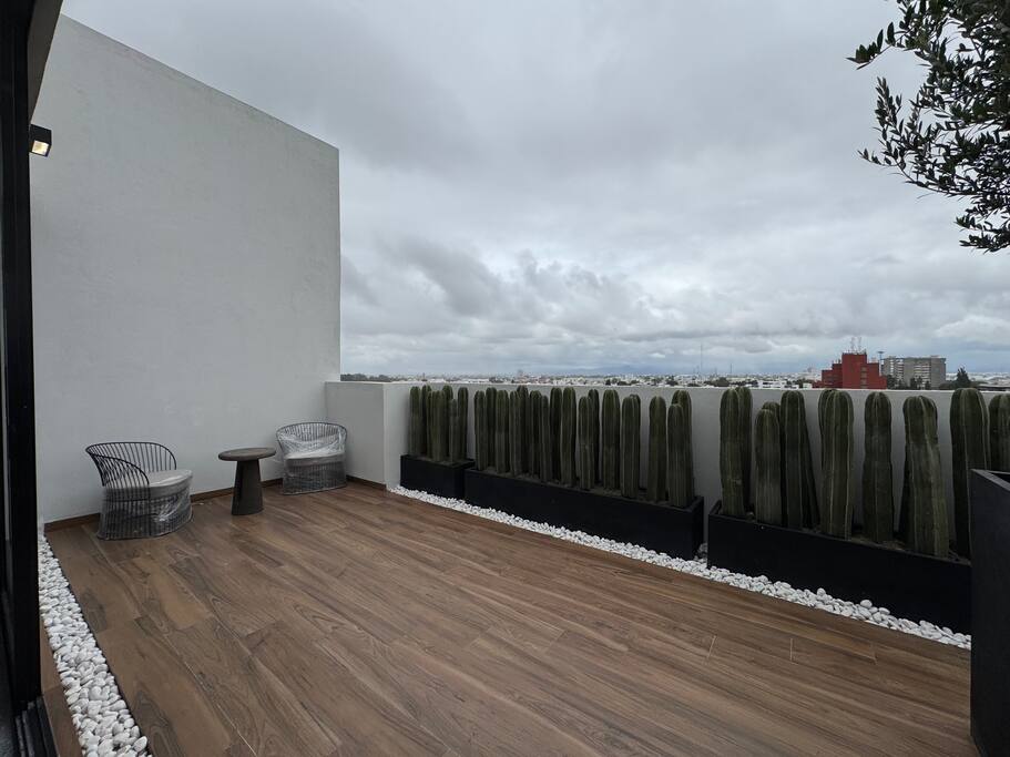 🛏 Stylish apartment w/ king bed, fast Wi-Fi, pool & epic views—steps from Carranza, walk to top cafés, HEB, Park Morales, bars & more. 🏡 Property Description Welcome to your modern, light-filled 4th-floor apartment overlooking vibrant Avenida Carranza—perfect for work trips, weekend escapes, or Feria fun. 🛏️ Bedroom Sink into a plush king-size mattress—soft yet supportive—for restful nights. Includes a walk-in closet and a private en-suite with strong hot water. A projector is provided for cozy movie nights. (Blackout blinds coming soon.) 🛋️ Living Room Bright and airy, with a high-comfort sofa bed (1.9m x 1.1m) that sleeps 2 adults, a private balcony, and beautiful city views. 🍳 Kitchen Fully equipped: gas stove, oven, full-size fridge, blender, kettle, French press, sharp knives, oven-safe pots/pans, wooden utensils, and more. We also provide olive oil, salt, pepper, chili flakes, herbs, and a garrafón with electric pump. (Filtered water system coming soon.) 🧑💻 Workspace & Internet Work comfortably with a solid standing desk, ergonomic chair, anti-fatigue mat, and 250 Mbps fiber-optic Wi-Fi—perfect for video calls, streaming, and gaming. 🛁 Bathrooms One private en-suite and one guest half-bath. Essentials provided: shampoo, conditioner, body wash, hand soap, towels, hair dryer, iron, and ironing board. 🏢 Building Amenities Enjoy a heated pool (bookable for private use), gym, grill area, and cava—grill and cava available by reservation. Secure building with 24/7 concierge, remote digital check-in, and gated on-site parking. 📍 Prime Location You’re just steps from Avenida Carranza and walking distance to the best of SLP: ⏱️ 5 mins walking: 🏞️ Park Morales (perfect for runs or yoga) 🏥 Hospital Central, pharmacies (including 24/7 Ahorro) 🛒 HEB, OXXO ☕ Bonnissimo (amazing coffee, and artesenal gelado) 🍽️ La Parroquia Morales (has a train inside!), La Creme de la Creme (French-Mexican fusion), La Otra España, La Peque 🍖 La Parrilla de Don George 🏦 HSBC, BBVA, Banamex, Banorte ⏱️ 10 mins walking: ☕ Starbucks, Vips, Mingo, Wing Stop 🎨 Contemporary Art Museum 🥐 Diepan, 🍕 La Superior 🍳 Fork Le Brunch Atelier 🏦 BanBajio, Scotiabank, Santander 🎓 UASLP ⏱️ 30 mins walking / 10 mins bus: 🏛️ Centro Histórico 🌳 Parque Tangamanga I, Jardín de Tequis 🛍️ Walmart, Costco, Sam’s Club, Home Depot 🚶 Sundays on Carranza Every Sunday morning, Carranza closes to traffic—creating a pedestrian-friendly, vibrant atmosphere perfect for walking and people-watching. 🔇 Peaceful & Private Despite the central location, the apartment stays quiet, breezy, and serene thanks to excellent ventilation and a high-quality fan. 💫 Whether you're visiting for Feria, remote work, or a relaxing getaway—this thoughtfully designed apartment offers peace, comfort, and unbeatable walkability in one of SLP’s most exciting neighborhoods. We’d love to host you!
