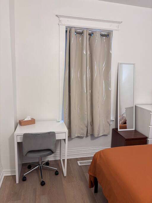 🛏️ Your Private Room This is a private room in a shared 3-bedroom house. The room has a comfortable full bed, a desk for working, and cabinet storage. Each room has a smart lock with a keypad for your security. 🏠 Shared Spaces Our shared bathroom, kitchen, and backyard are kept clean and organized. While some daytime noise is natural, we strive to maintain a calm and welcoming environment. 🚗 Parking We can provide free parking; however, it is limited. Please ask about availability 🧺 Laundry We have laundry facilities. You're welcome to use them during your stay. If you need laundry supplies (detergent, softener, etc.), they're available for an extra fee. 📩 We’re Here to Help If you have questions, feel unsure, or want local recommendations, we’re always happy to help; just send us a message! 📕 After booking, you’ll receive a detailed guide with: • Directions to the property • House rules & expectations • Must-see spots & local gems • Helpful tips for a smooth stay We truly hope you enjoy Toronto 🇨🇦 as much as we do 💙 — it’s our pleasure to host you in this amazing city! 🏙️