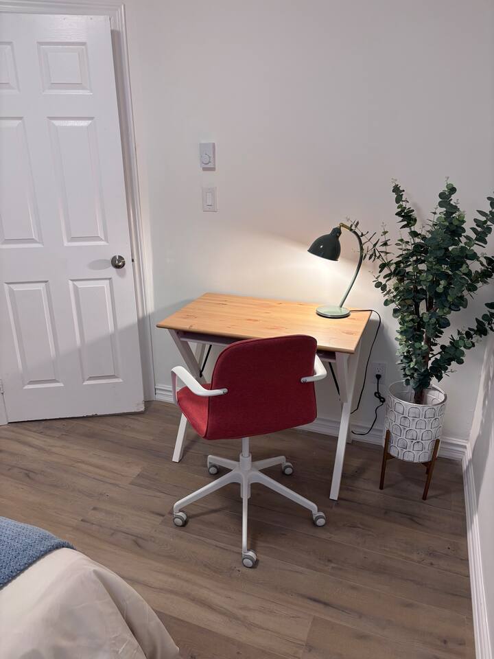 🛏️ Your Private Room This is a private room in a shared bedroom house. The room has a comfortable full bed, a desk for working, and cabinet storage. Each room has a smart lock with a keypad for your security. 🏠 Shared Spaces Our bathroom, kitchen, and backyard are shared spaces that we keep clean and organized, and we ask you to do the same. Some daytime noise is natural, but we aim for a calm, welcoming home. 👥 Homestay This is a homestay, which means you are staying in a home with the host family or other guests. Please be mindful of noise, cleanliness, and personal belongings, and respect everyone’s privacy. 🚗 Parking Paid parking on street. Make sure to check signage. 🧺 Laundry On-site laundry is available for you to use during your stay, and we provide detergent and supplies at no cost.
