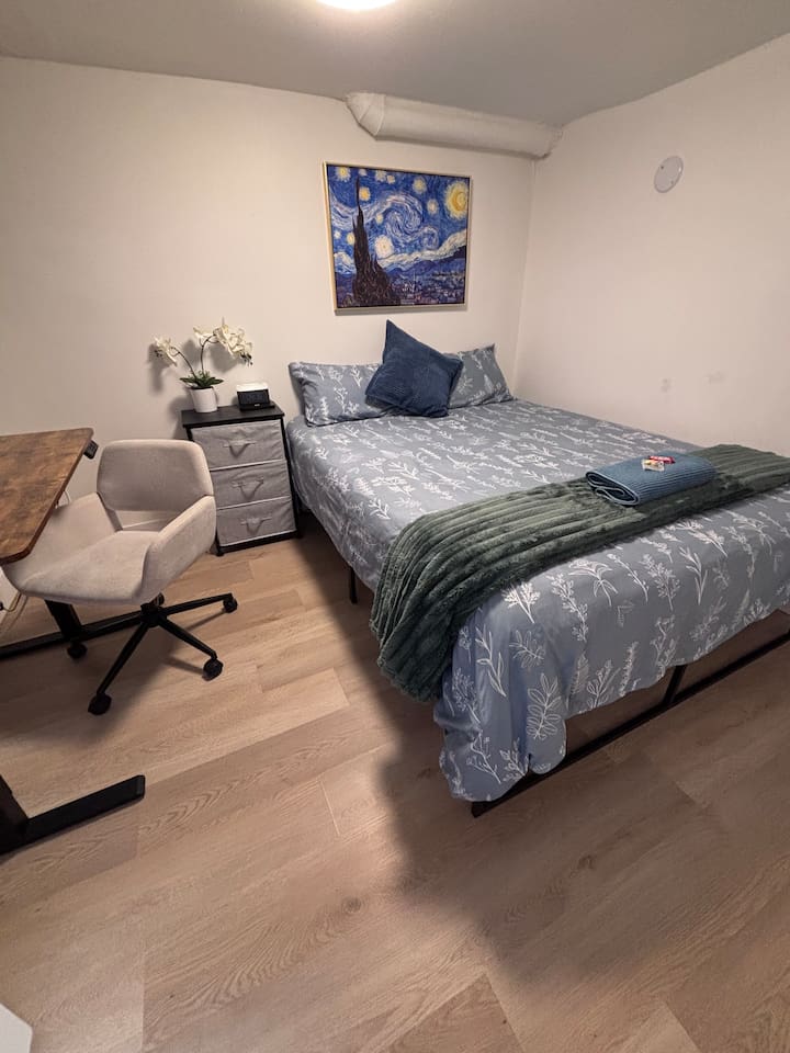 🛏️ Your Private Room This is a private room in a shared 3-bedroom house. The room has a comfortable full bed, a desk for working, and cabinet storage. Each room has a smart lock with a keypad for your security. 🏠 Shared Spaces Our bathroom, kitchen, and backyard are shared spaces that we keep clean and organized, and we ask you to do the same. Some daytime noise is natural, but we aim for a calm, welcoming home. 👥 Homestay This is a homestay, which means you are staying in a home with the host family or other guests. Please be mindful of noise, cleanliness, and personal belongings, and respect everyone’s privacy. 🚗 Parking We can provide free parking; however, it is limited. Please ask about availability. 🧺 Laundry On-site laundry is available for you to use during your stay, and we provide detergent and supplies at no cost.